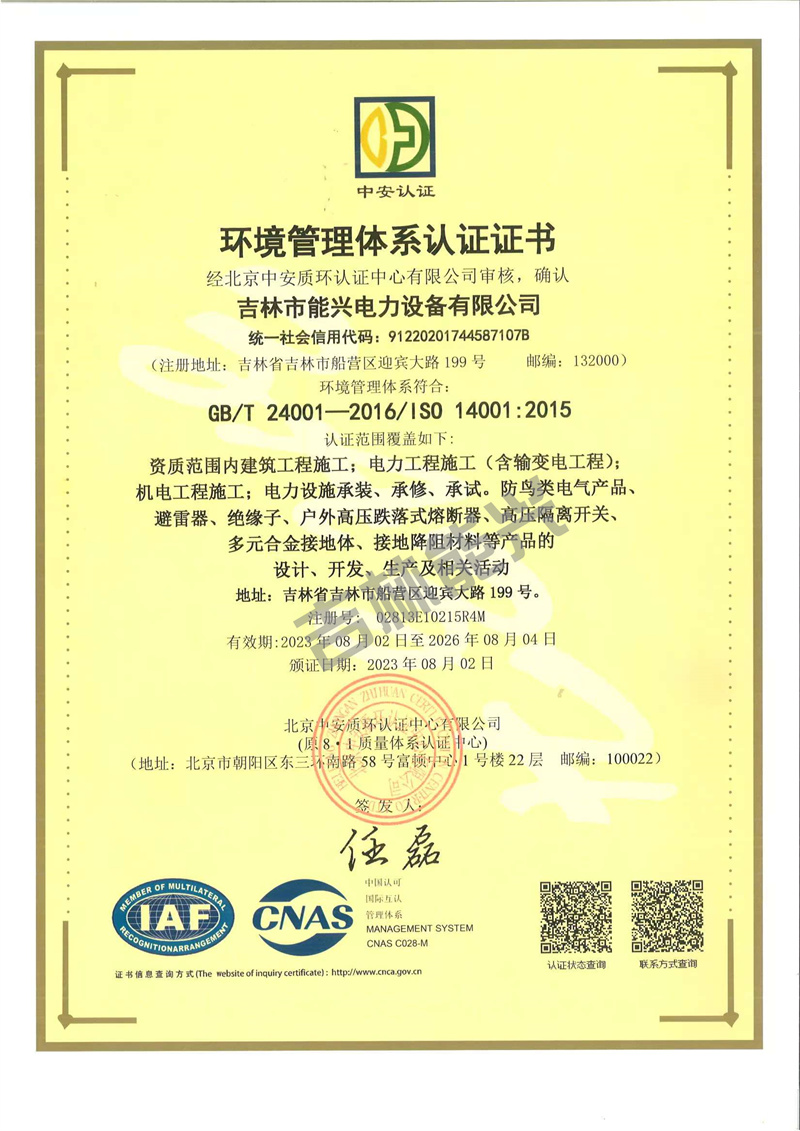 环境管理体系认证证书