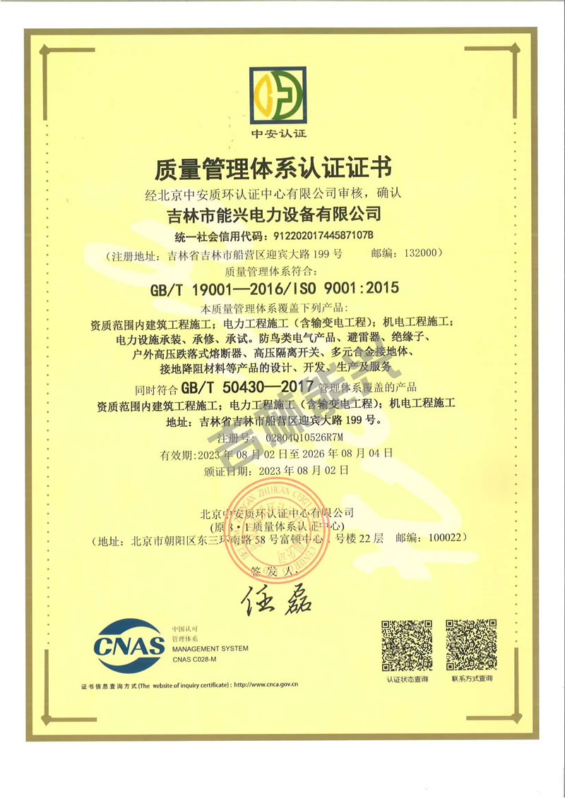 质量管理体系认证证书